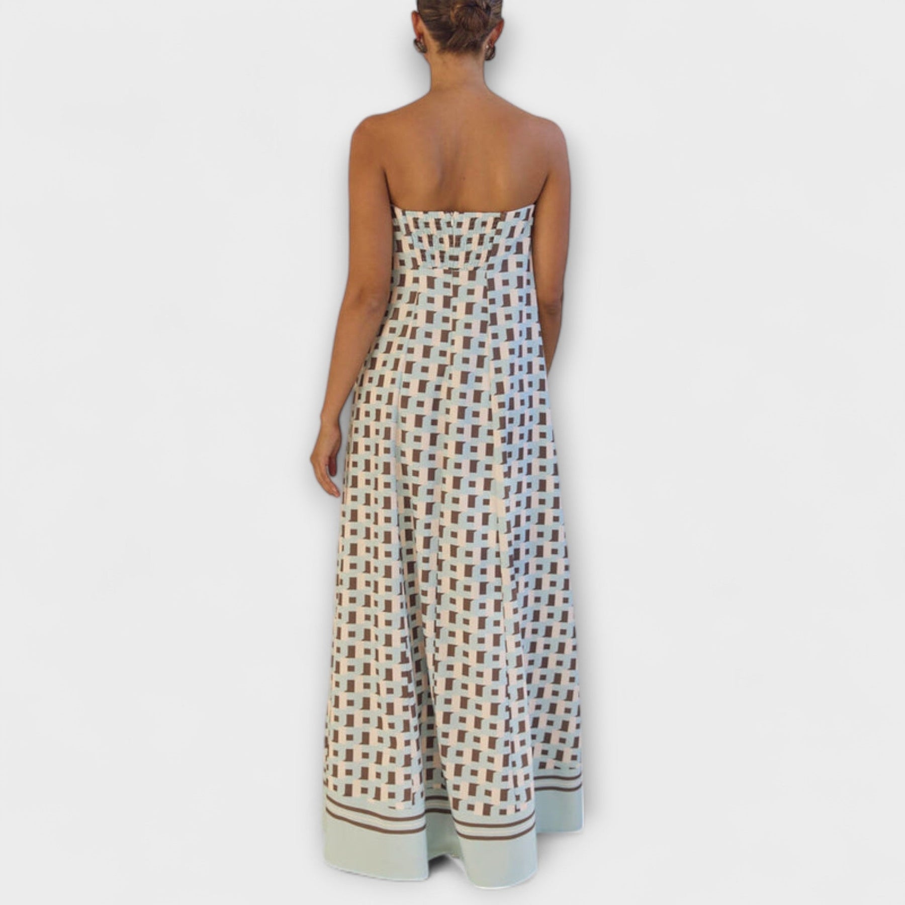 Hazel - Unique Geometric Off-Shoulder Maxi Dress
